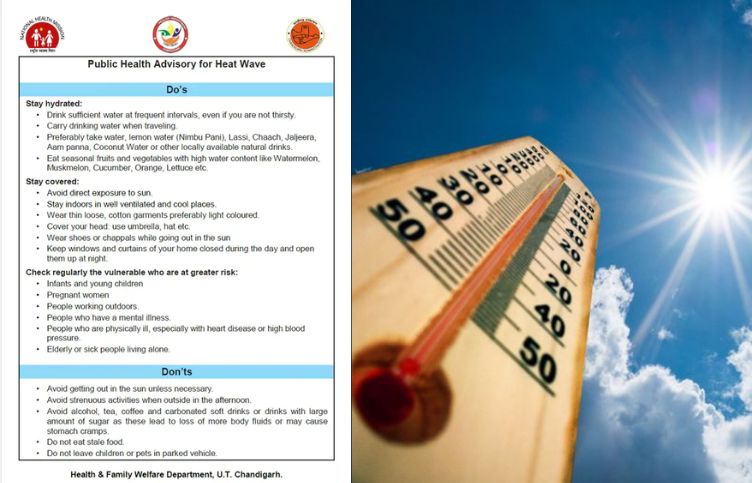 ਚੰਡੀਗੜ੍ਹ ਵਿੱਚ ਵੱਧ ਰਹੀ ਗਰਮੀ ਨੂੰ ਦੇਖਦਿਆਂ ਸਿਹਤ ਵਿਭਾਗ ਨੇ ਹੀਟਵੇਵ ਐਡਵਾਈਜ਼ਰੀ ਜਾਰੀ ਕਰ ਦਿੱਤੀ ਹੈ। ਮੌਸਮ ਵਿਭਾਗ ਵੱਲੋਂ ਅਗਲੇ ਤਿੰਨ ਦਿਨਾਂ ਲਈ ਹੀਟਵੇਵ ਅਲਰਟ ਜਾਰੀ ਕੀਤਾ ਗਿਆ ਹੈ। ਵਿਭਾਗ ਨੇ ਲੋਕਾਂ ਨੂੰ ਖਾਸ ਤੌਰ ਤੇ ਚੌਕਸ ਰਹਿਣ ਅਤੇ ਆਪਣੀ ਸਿਹਤ ਦਾ ਧਿਆਨ ਰੱਖਣ ਦੀ ਅਪੀਲ ਕੀਤੀ ਹੈ।