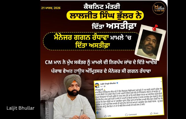 ਇਸ ਮਾਮਲੇ ਵਿੱਚ ਅਸਤੀਫਾ ਦੇਣ ਵਾਲੇ ਮੰਤਰੀ ਲਾਲਜੀਤ ਭੁੱਲਰ ਨੇ ਕਿਹਾ ਕਿ ਵਾਹਿਗੁਰੂ ਜੀ ਦਾਸ ਉੱਪਰ ਜੋ ਇਲਜ਼ਾਮ ਲੱਗ ਰਹੇ ਨੇ ਉਹ ਬਿਲਕੁਲ ਬੇਬੁਨਿਆਦ ਅਤੇ ਝੂਠੇ ਨੇ ਪਰ ਸਾਡੀ ਪਾਰਟੀ ਹਮੇਸ਼ਾ ਸੱਚ ਦਾ ਸਾਥ ਦਿੰਦੀ ਹੈ ਤੇ ਹਮੇਸ਼ਾ ਸੱਚ ਦੇ ਨਾਲ ਖੜਦੀ ਹੈ ਇਸ ਲਈ ਮੇਰੇ ਤੇ ਜੋ ਇਲਜ਼ਾਮ ਲੱਗੇ ਨੇ ਮੈਂ ਚਾਹੁੰਦਾ ਹਾਂ ਉਹਨਾਂ ਇਲਜ਼ਾਮਾਂ ਦੀ ਸਹੀ ਤਰੀਕੇ ਦੇ ਨਾਲ ਜਾਂਚ ਹੋਵੇ ਤਾਂ ਕਿ ਸਹੀ ਫੈਸਲਾ ਬਾਹਰ ਆ ਸਕੇ ਇਸ ਕਰਕੇ ਜਿੰਨੀ ਦੇਰ ਤੱਕ ਇਹ ਜਾਂਚ ਪੂਰੀ ਨਹੀਂ ਹੋ ਜਾਂਦੀ ਮੈਂ ਪਾਰਟੀ ਨੂੰ ਬੇਨਤੀ ਕਰਾਂਗਾ ਤੇ ਸਾਡੇ ਮਾਨਯੋਗ ਮੁੱਖ ਮੰਤਰੀ ਨੂੰ ਬੇਨਤੀ ਕਰਾਂਗਾ ਕਿ ਮੇਰਾ ਮੰਤਰੀ ਪਦ ਦਾ ਅਸਤੀਫਾ ਪ੍ਰਵਾਨ ਕੀਤਾ ਜਾਵੇ ਤਾਂ ਕਿ ਇਸ ਮਾਮਲੇ ਵਿੱਚ ਮੇਰਾ ਮੰਤਰੀ ਪਦ ਕੋਈ ਉੜੀਕਾ ਨਾ ਬਣੇ ਅਤੇ ਇਸ ਮਾਮਲੇ ਦੀ ਸਹੀ ਜਾਂਚ ਹੋਵੇ ਸੋ ਮੈਂ ਆਪਣਾ ਅਸਤੀਫਾ ਮੁੱਖ ਮੰਤਰੀ ਪੰਜਾਬ ਸ੍ਰ ਭਗਵੰਤ ਸਿੰਘ ਮਾਨ ਜੀ ਨੂੰ ਭੇਜ ਰਿਹਾ ਹਾਂ ਤਾਂ ਜੋ ਅੱਗੇ ਇਸ ਮਾਮਲੇ ਦੀ ਸਹੀ ਜਾਂਚ ਹੋ ਸਕੇ। ਧੰਨਵਾਦ