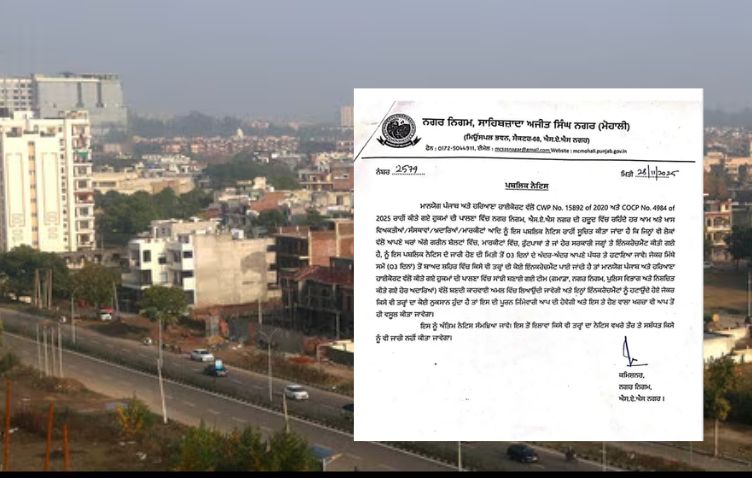 ਮੋਹਾਲੀ ਵਿੱਚ, ਜਿਨ੍ਹਾਂ ਲੋਕਾਂ ਨੇ ਆਪਣੇ ਘਰਾਂ ਦੇ ਸਾਹਮਣੇ ਹਰੀਆਂ ਪੱਟੀਆਂ, ਬਾਜ਼ਾਰਾਂ, ਫੁੱਟਪਾਥਾਂ ਅਤੇ ਹੋਰ ਖੇਤਰਾਂ ‘ਤੇ ਕਬਜ਼ਾ ਕੀਤਾ ਹੈ, ਉਨ੍ਹਾਂ ਨੂੰ ਹੁਣ ਤਿੰਨ ਦਿਨਾਂ ਦੇ ਅੰਦਰ ਇਨ੍ਹਾਂ ਕਬਜ਼ੇ ਹਟਾਉਣ ਦੀ ਲੋੜ ਹੋਵੇਗੀ। ਇਹ ਹੁਕਮ ਨਗਰ ਨਿਗਮ ਕਮਿਸ਼ਨਰ, ਮੋਹਾਲੀ ਨੇ ਪੰਜਾਬ ਅਤੇ ਹਰਿਆਣਾ ਹਾਈ ਕੋਰਟ ਦੇ ਹੁਕਮਾਂ ਦੇ ਜਵਾਬ ਵਿੱਚ ਜਾਰੀ ਕੀਤਾ ਹੈ।