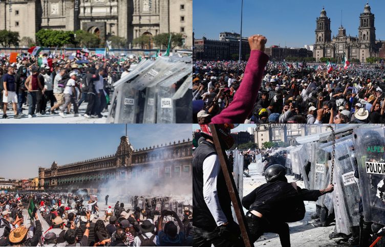 ਮੈਕਸੀਕੋ ਵਿੱਚ ਸ਼ਨੀਵਾਰ ਨੂੰ ਹਜ਼ਾਰਾਂ GenZ ਨੌਜਵਾਨ ਵਧਦੇ ਅਪਰਾਧ, ਭ੍ਰਿਸ਼ਟਾਚਾਰ, ਹਿੰਸਾ ਲਈ ਸਜ਼ਾ ਤੋਂ ਛੋਟ, ਜਨਤਕ ਕਤਲ ਅਤੇ ਸੁਰੱਖਿਆ ਦੀ ਘਾਟ ਵਿਰੁੱਧ ਸੜਕਾਂ ‘ਤੇ ਉਤਰ ਆਏ। ਗੁੱਸੇ ਨੂੰ ਭੜਕਾਉਣ ਵਾਲੀ ਵੱਡੀ ਘਟਨਾ 1 ਨਵੰਬਰ ਨੂੰ ਮਿਚੋਆਕਨ ਰਾਜ ਵਿੱਚ ਉਰੂਆਪਨ ਦੇ ਮੇਅਰ ਕਾਰਲੋਸ ਮੰਜ਼ੋ ਦਾ ਜਨਤਕ ਕਤਲ ਸੀ। ਪ੍ਰਦਰਸ਼ਨਕਾਰੀਆਂ ਨੇ ਰਾਸ਼ਟਰਪਤੀ ਦੇ ਨਿਵਾਸ ਨੈਸ਼ਨਲ ਪੈਲੇਸ ਦੀਆਂ ਸੁਰੱਖਿਆ ਕੰਧਾਂ ਤੋੜ ਦਿੱਤੀਆਂ। ਪੁਲਿਸ ‘ਤੇ ਪੱਥਰ, ਹਥੌੜੇ, ਪਟਾਕੇ, ਡੰਡੇ ਅਤੇ ਜ਼ੰਜੀਰਾਂ ਨਾਲ ਹਮਲਾ ਕੀਤਾ। ਪੁਲਿਸ ਨੇ ਅੱਥਰੂ ਗੈਸ ਨਾਲ ਜਵਾਬ ਦਿੱਤਾ। ਸੁਰੱਖਿਆ ਸਕੱਤਰ ਪਾਬਲੋ ਵਾਜ਼ਕੇਜ਼ ਨੇ ਦੱਸਿਆ ਕਿ 120 ਲੋਕ ਜ਼ਖਮੀ ਹੋਏ (100 ਪੁਲਿਸ ਅਧਿਕਾਰੀ) ਅਤੇ 20 ਗ੍ਰਿਫਤਾਰ ਹੋਏ।