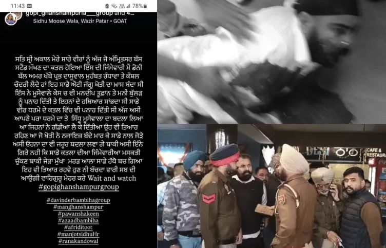 ਪੋਸਟ ਵਿੱਚ ਗੋਲੀ ਘਨਸ਼ਿਆਮਪੁਰੀਆ, ਦਵਿੰਦਰ ਬੰਬੀਹਾ, ਮਾਨ ਘਨਸ਼ਿਆਮਪੁਰੀਆ, ਪਵਨ ਸ਼ਕੀਨ, ਆਜ਼ਾਦ ਬੰਬੀਹਾ, ਅਫਰੀਦੀ ਟਾਟ, ਮਨਜੋਤ ਸਿੱਧੂ ਐਚਆਰ ਤੇ ਰਾਣਾ ਕੰਦੋਵਾਲੀਆ ਸਮੇਤ ਕਈ ਨਾਵਾਂ ਦਾ ਜ਼ਿਕਰ ਕੀਤਾ ਗਿਆ। ਪੁਲਿਸ ਨੇ ਮਾਮਲੇ ਨੂੰ ਉੱਚ ਪੱਧਰੀ ਜਾਂਚ ਅਧੀਨ ਲੈ ਲਿਆ ਹੈ ਅਤੇ ਫਰਾਰ ਮੁਲਜ਼ਮ ਦੀ ਭਾਲ ਤੇਜ਼ ਕਰ ਦਿੱਤੀ ਹੈ।