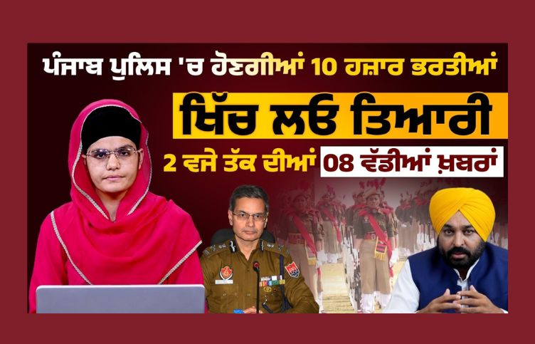 Video – ਖਿੱਚ ਲਓ ਤਿਆਰੀ, ਪੰਜਾਬ ਪੁਲਿਸ ‘ਚ ਹੋਣਗੀਆਂ 10 ਹਜ਼ਾਰ ਭਰਤੀਆਂ।2 PM 08 NEWS । 2 ਵਜੇ ਤੱਕ ਦੀਆਂ 08 ਖ਼ਬਰਾਂ । 25 FEB । THE KHALAS TV