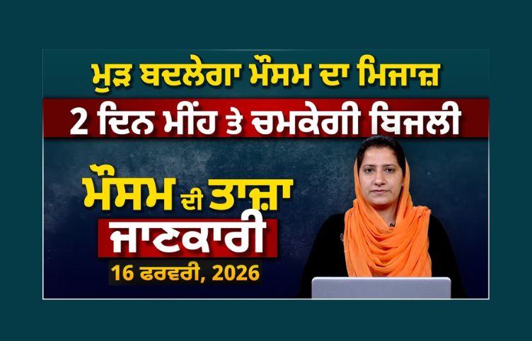 Video – ਮੁੜ ਬਦਲੇਗਾ ਮੌਸਮ ਦਾ ਮਿਜਾਜ਼, 2 ਦਿਨ ਮੀਂਹ ਤੇ ਚਮਕੇਗੀ ਬਿਜਲੀ। WEATHER REPORT | Punjab-Himachal Weather Forecast l 16 February । THE KHALAS TV